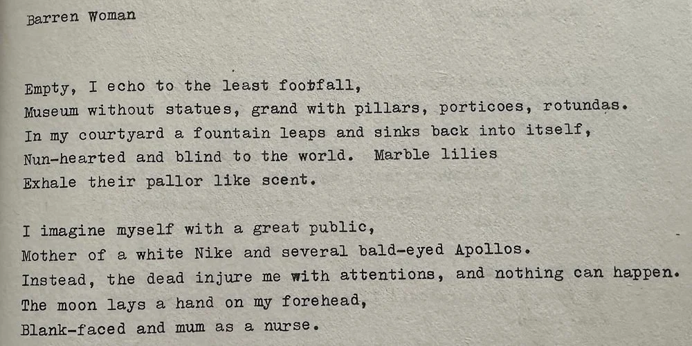 In the second stanza, the speaker imagines herself overcoming her barrenness and becoming a mother to children like Greek gods. Nike, the goddess of victory, and Apollo, the god of medicine and poetry, offers hope in the speaker’s inability to find fertility. With the speaker’s internal and external struggles lasting for long periods of time, the longing for victory and healing over them is astounding and rejuvenating. As someone who has found Greek mythology a sanctuary from the real world, I find hope in the speaker’s desire to be a mother.