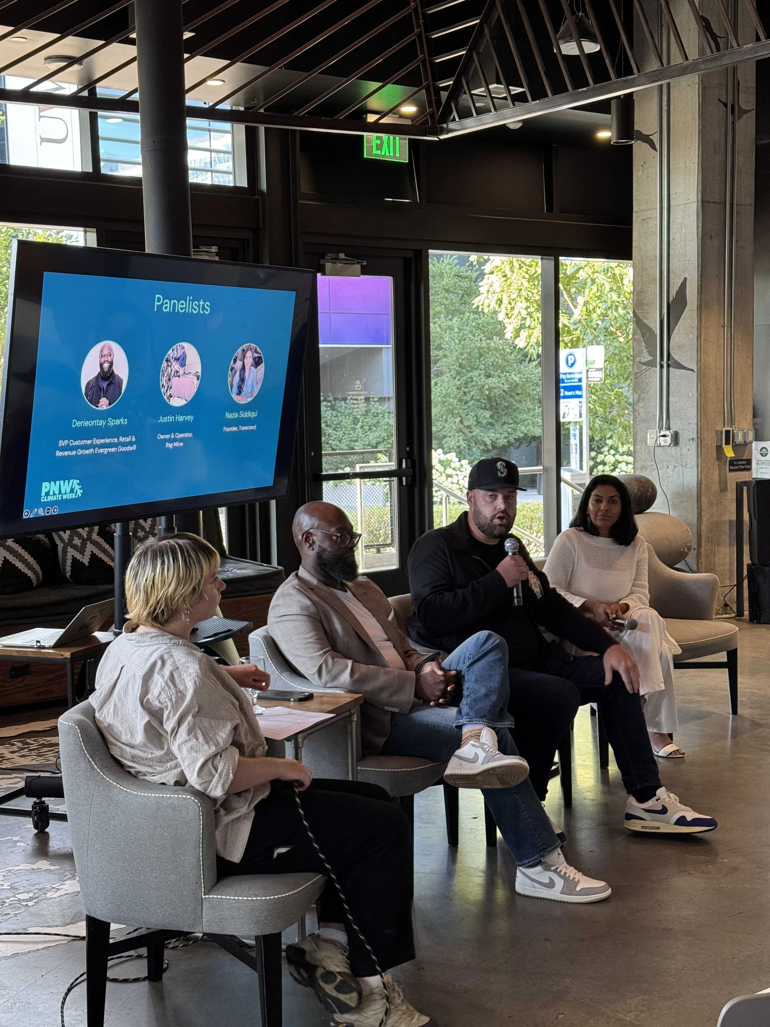 Cheryl: The Department of Commerce [talked] about regulations to build energy or build something that’s not standard somewhere in Washington State. The challenges are with smaller cities or smaller counties. They don’t always have planners, or planners that are doing single-family homes, or manufacturing, but not for energy or anything like that… So, it [covered] how to bring the planners together and educate them more, and streamline the regulations, and maybe upskill and understand regulations. I think that’s the challenge. I [also] went to the fashion show; just meeting people and having these [types of] conversations [is] fun. It’s building, you know, different connections to different organizations. PNW Climate Week is tech-heavy, climate tech-heavy, and energy-heavy. Fashion is kind of seen as, “Oh, that’s cute.” What we’re trying to [do is instill] hope. How can we build up fashion to be seen as an important part of, you know, reducing climate impact, especially out here? We’re not Portland or New York or LA.